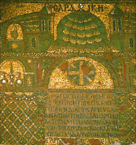 Mozaiky na stěnách jsou datovány do druhé poloviny století dvanáctého. Znázorňují výjevy z doby předcházející narození Páně a prvních sedm koncilů.