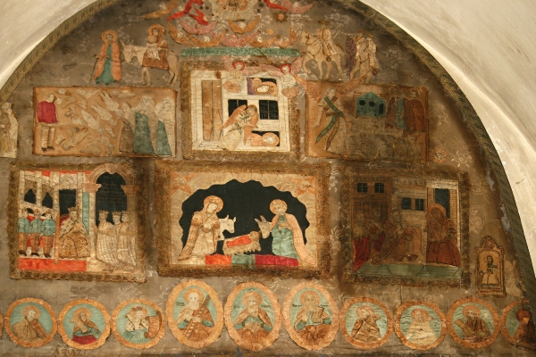 Obrazy na stěnách chrámu nejčastěji zobrazují výjevy ze života Ježíše.
