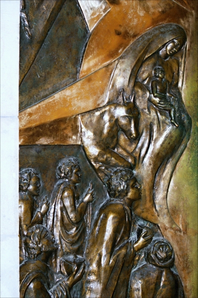 Detail levé poloviny dveří, kterými se vychází z chrámu do ambitu sousedního kostela svaté Kateřiny.